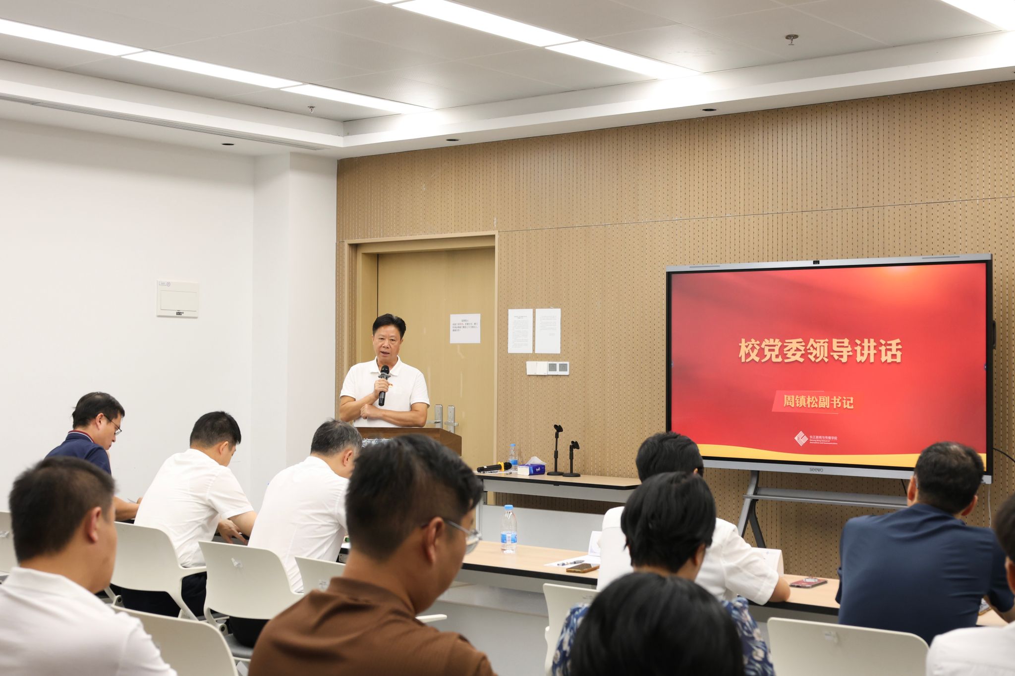 周镇松在总结讲话中指出,把支部建在专业上是对党史中“支部建在连上”宝贵经验的当代继承与创新。他希望学院党委进一步提高政治站位,严守政治纪律,积极宣传践行马克思主义新闻观,将支部创新作为重要抓手,打造学院党建品牌,推动党建工作与业务工作从“简单相加”到“深度相融”再到“浑然一体”,形成特色,力求实效,以高质量党建促进学院高质量发展。