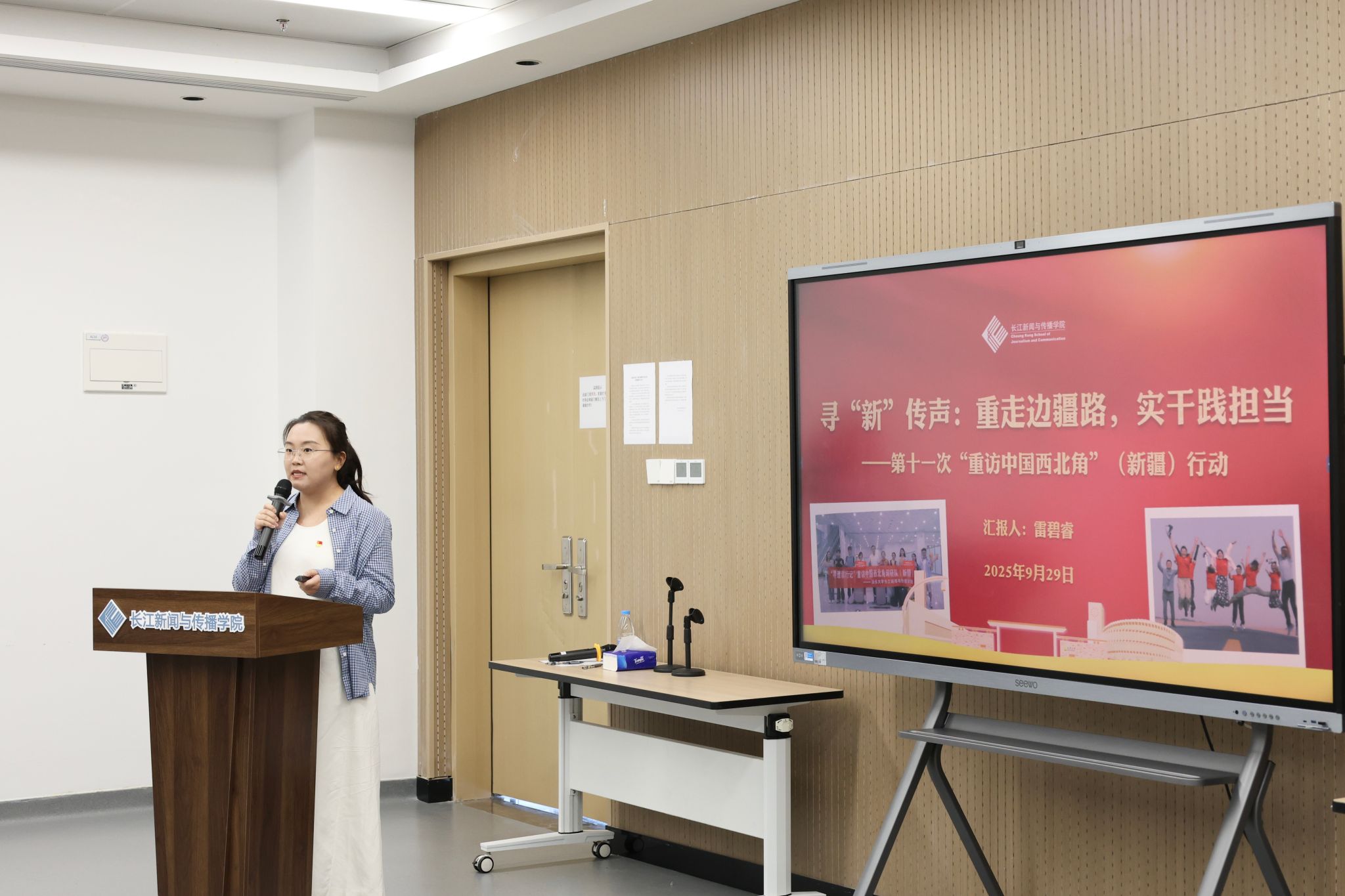 会上还举行了“追寻先生足迹,书写时代华章”第十一次重走中国的西北角主题分享。学生党员李林凤汇报了今年暑假到甘南的收获,她表示,在跨越6个城市近400公里的历程中,对新闻工作者的“脚力、眼力、脑力、笔力”有了深刻体悟,“这不仅是一次红色精神的寻根之旅,更是一场新闻业务能力的实战演练”。
