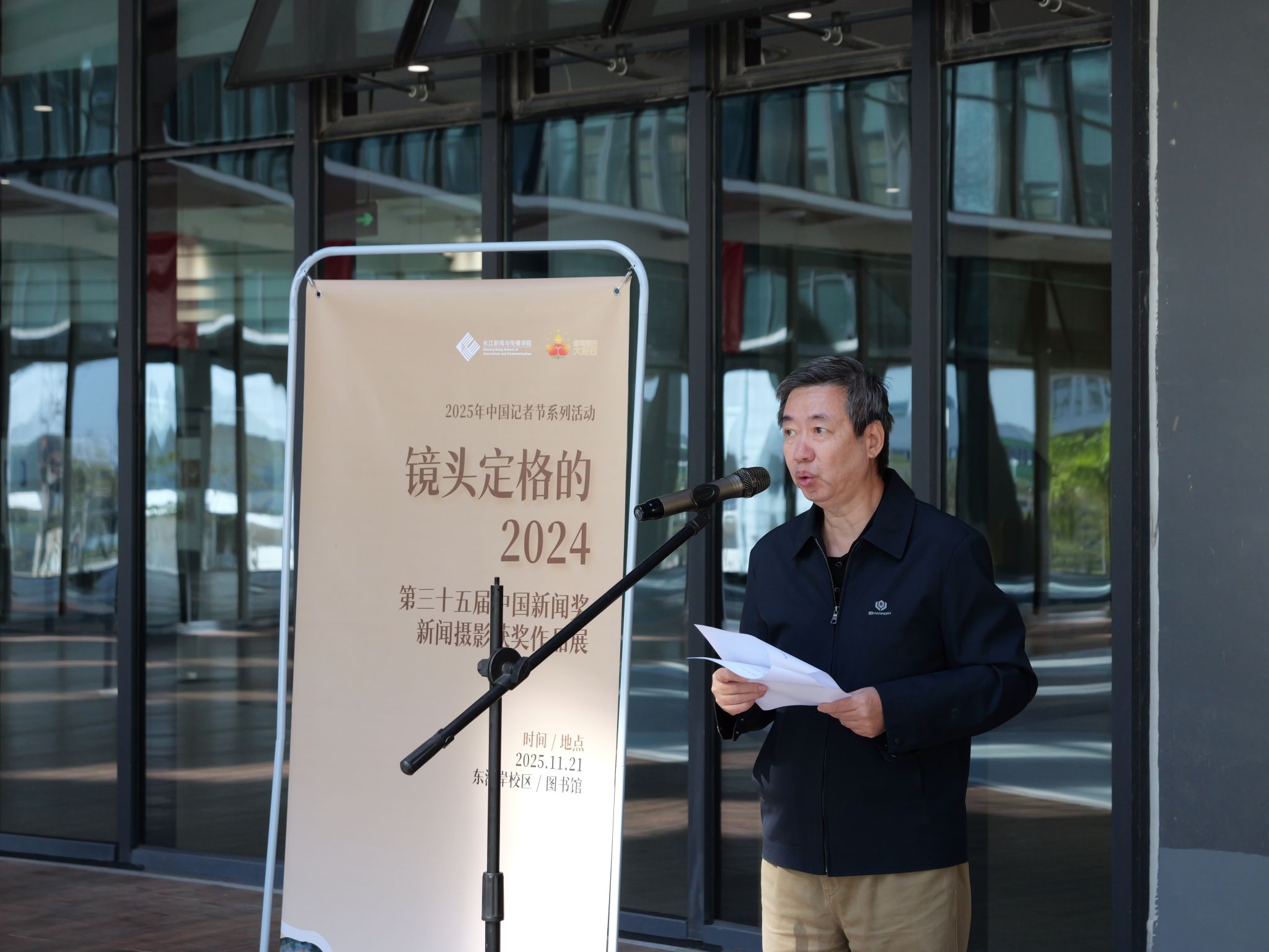 11月21日上午,汕头大学2025年记者节系列活动暨“镜头定格的2024——第35届中国新闻奖新闻摄影获奖作品展”揭幕式在东海岸校区图书馆大厅举行。