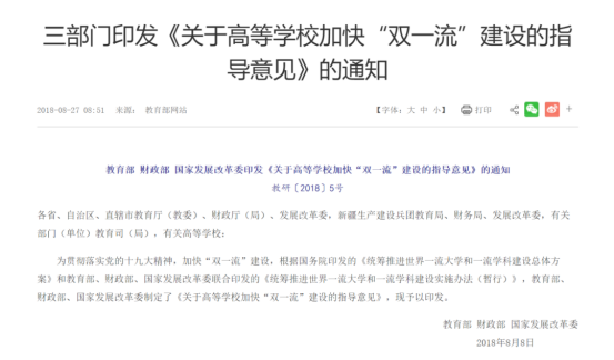 2018年8月8日教育部、财政部、国家发改委三部门联合下发《关于高等学校加快“双一流”建设的指导意见》,“双一流”指导意见赋予高校新时期国际化建设新使命——“让世界听到更多中国高校的声音”。