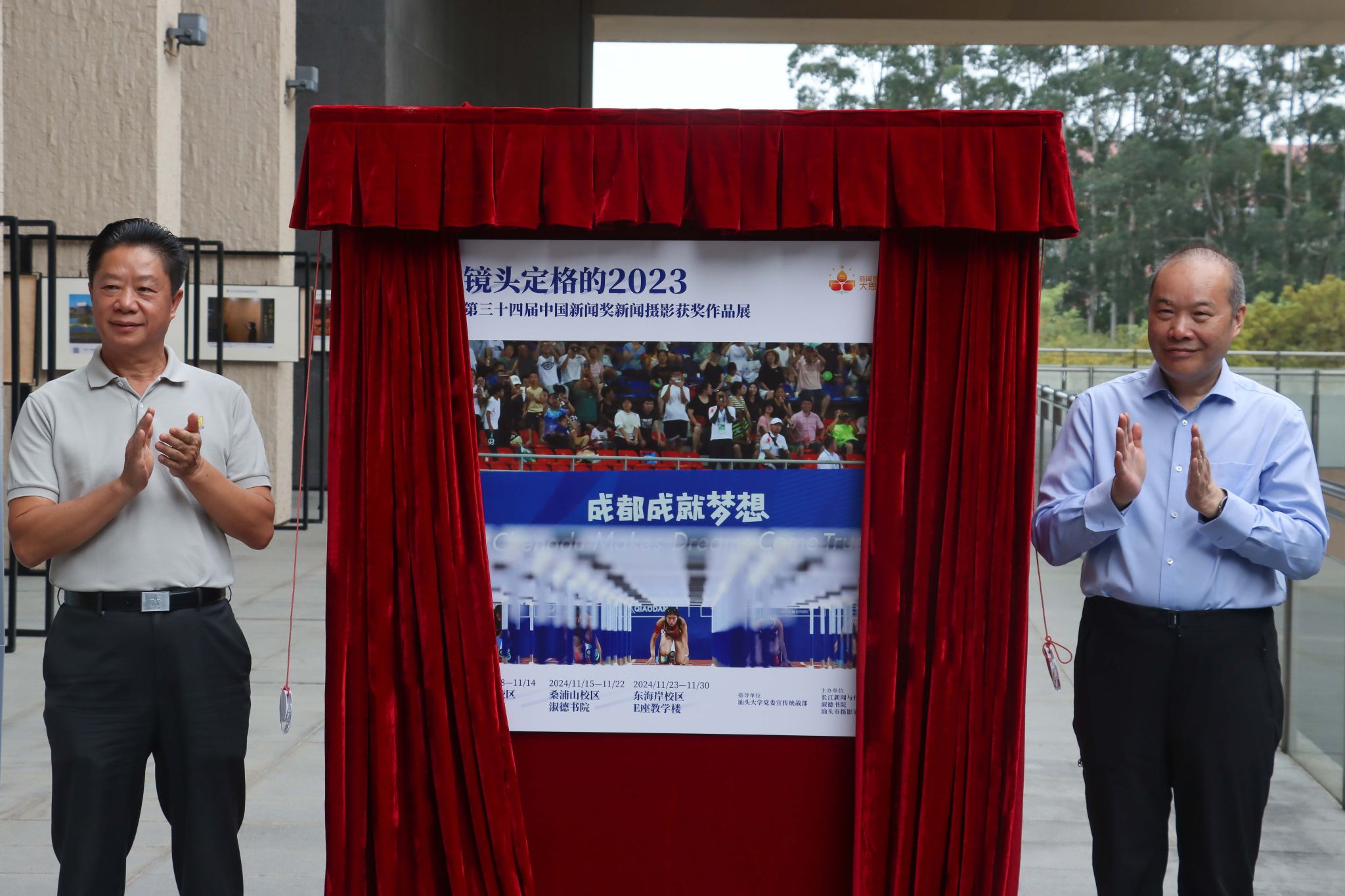 118日记者节当天,“镜头定格的2023——第34届中国新闻奖新闻摄影获奖作品展”在汕头大学图书馆揭幕。影展共展出新闻摄影类14项共40幅新闻摄影作品,将持续在汕大校园的图书馆、淑德书院、教学楼等地流动展出23天。“我们今年继续开展‘中国新闻奖进校园’活动,先筹办了一场第34届中国新闻奖获奖摄影作品最早进校园的影展,又在第一时间邀请到四位获奖记者来校讲述创作体会,”汕头大学党委副书记周镇松介绍道,“这意在给同学们开展一次新闻实务的教学,更是为同学们提供一次宝贵的思想政治教育。”