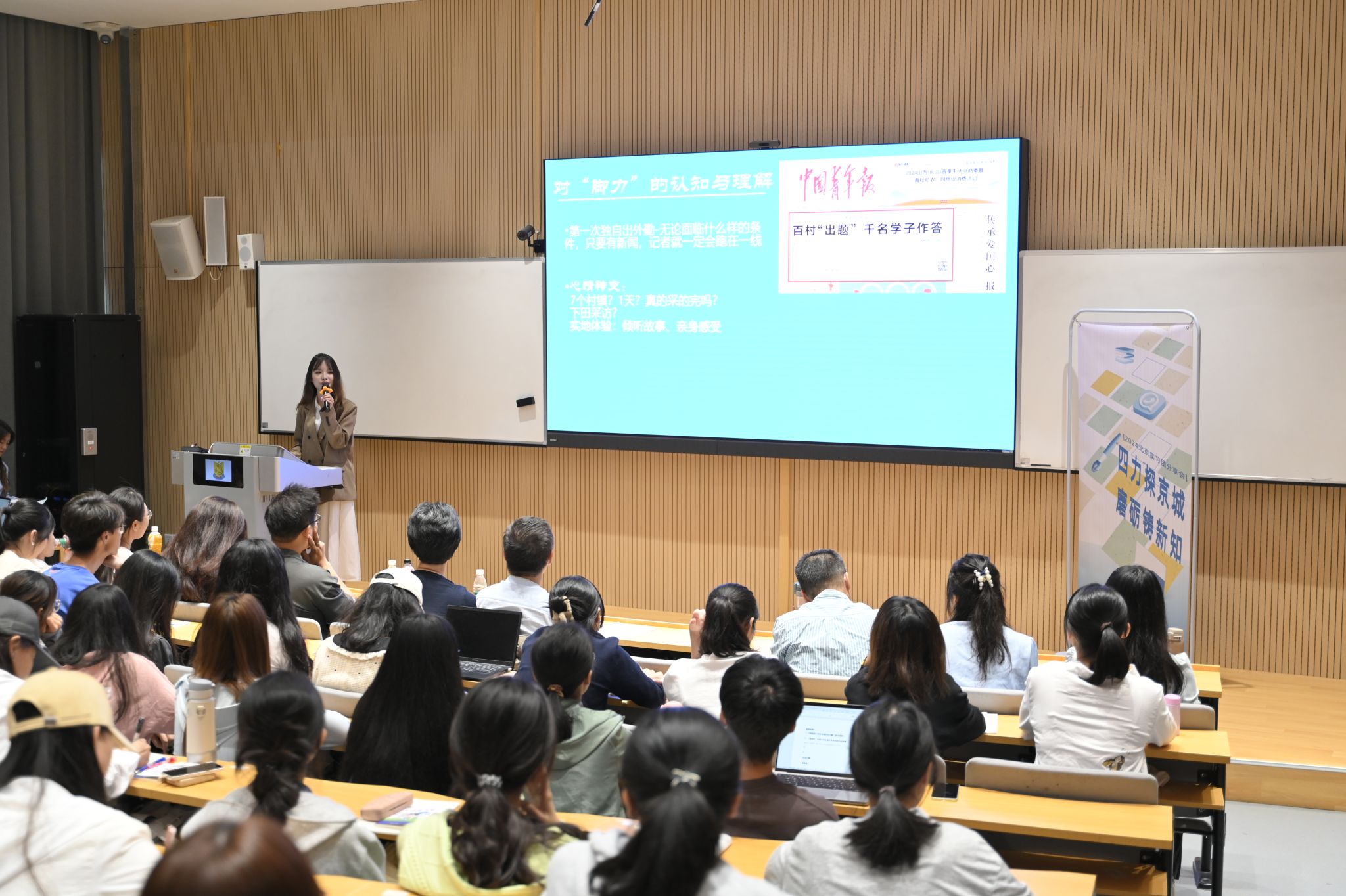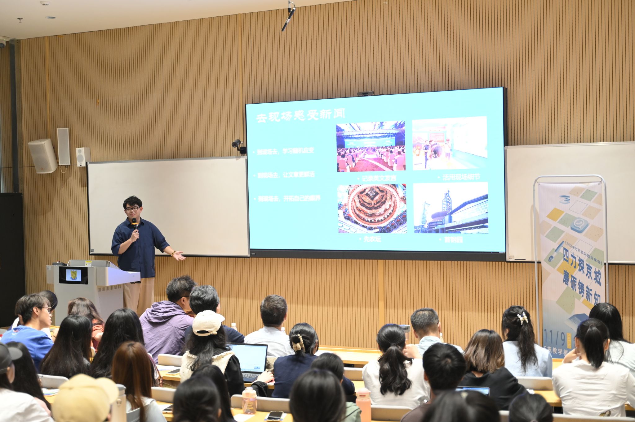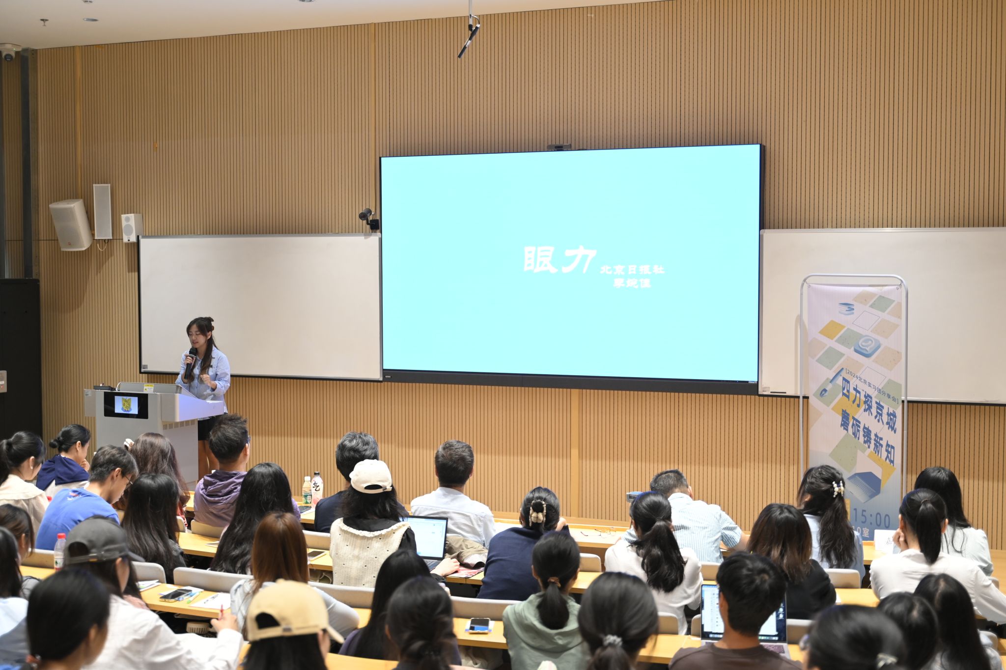 夯实“脚力”是新闻工作者的基础。2022级新闻学专业的曾怡莹、宣海萌、陈宇翊,以及2022级网络与新媒体专业的罗炜琪,以自己工作中的案例,讲述他们是如何深入新闻一线,实地采访,获得最有价值的新闻信息。曾怡莹回想起自己在中国青年报的一次采访经历,一天之内采访七个村镇,跟着实践队伍进入田地和林场,她表示,“无论面临什么样的条件,新闻记者一定会跑在前线。”陈宇翊分享了她在北青深一度的采访工作,“深度报道的操作时限长,采访量大,信息复杂,不是一天两天就能完成的,需要蹲守,需要长期的坚持。”这也是她在实习期间学到的重要一课。罗炜琪用两张北京地图,告诉同学们自己经常跑新闻现场的活动范围以及跑过最远的一次现场,切身实地告诉大家,“新闻是用脚跑出来的”。宣海萌则用自己采访的经历说明:“只有深入新闻现场,才能抓住现场的细节,才能写出鲜活的新闻稿件。”
