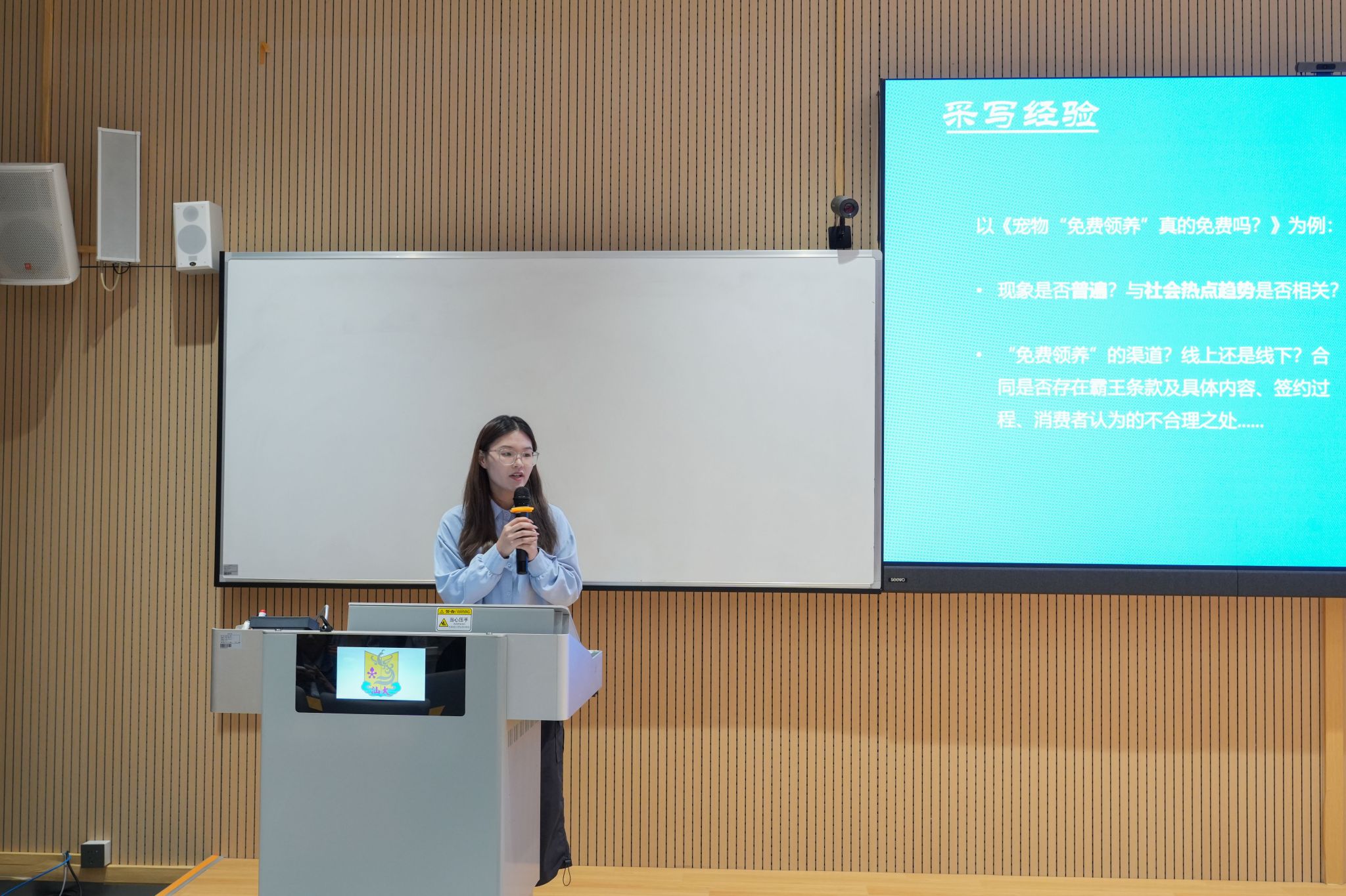新闻工作者需要具备敏锐的观察力,2022级新闻学专业的李婉佳和2022级国际新闻与传播专业的陈琳琳围绕“眼力”这一主题展开分享。李婉佳介绍了自己在陌生的城市中如何通过观察寻找选题的技巧和方法,“空闲时间多出去走走、关注身边人、市民热线,以及在互联网上获取线索、找到选题。”陈琳琳则将眼力的重点放在了对信息的筛选和确认上,在中国妇女报实习的她牢牢记住实习时主任的话,“我们发出的每一篇报道,都代表着全国一半人口的宣传工作”,确保信息的真实性和可靠性成为了她实习中的头等大事。她用自己的一个经历向大家分享,如何在细心的观察中拨开网络信息制造的迷雾。