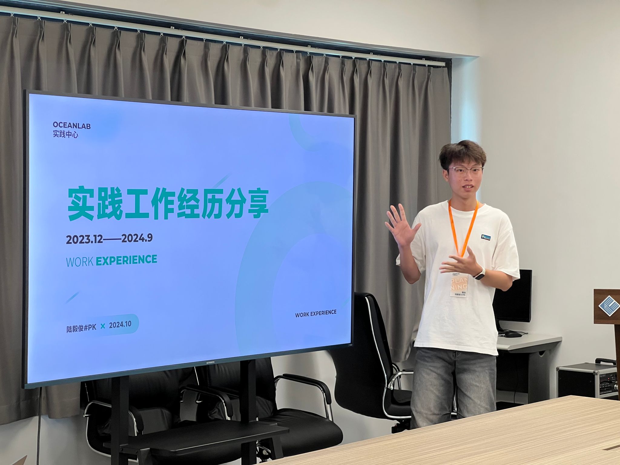 在分享会环节,实践中心成员陆毅俊分享道:“丰富的项目实践经历极大地提升了我的策划思维、统筹执行能力和自信心。在处理过各类突发情况,吃过各种苦头后,也让我的心态更稳、本领更硬。”他自2023年12月加入实践中心以来,累计参与院校项目9个,实习公司项目20余个。