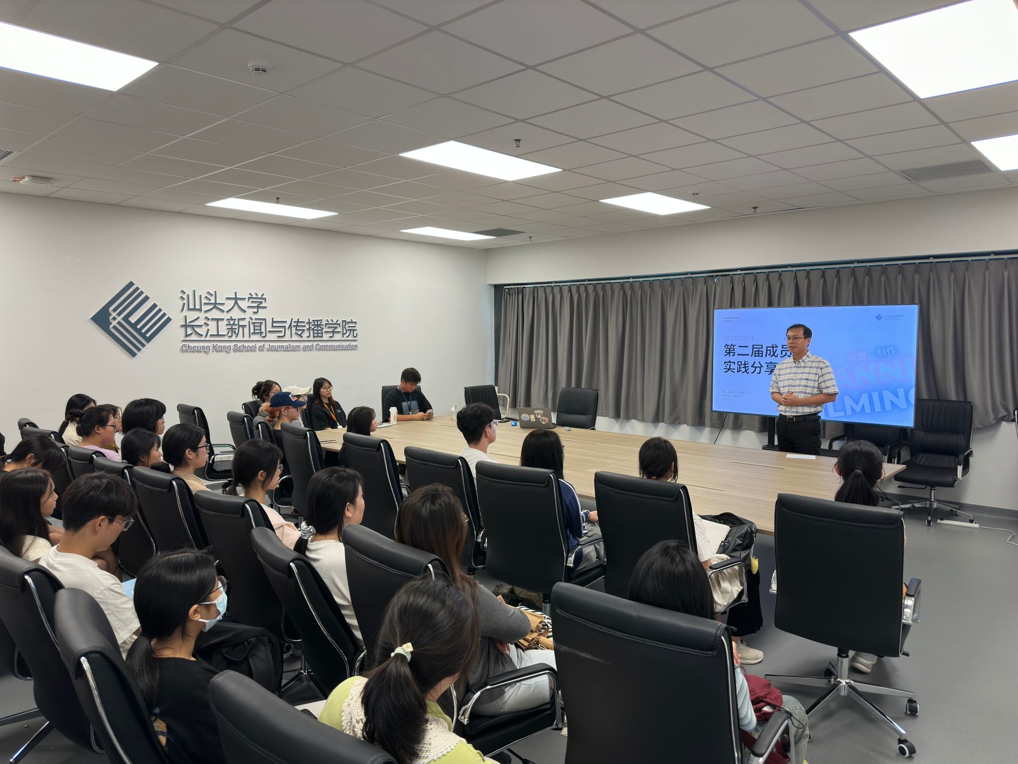 10月10号中午,由长江新闻与传播学院与深圳潮创势文化科技有限公司联合成立的“OceanLab”实践中心经过两年运作,实现校企合作双向赋能,助力学生高质量就业。为展示过去一年的育人成果,双方联合举办了第二届成员实践分享会暨第三届招新说明会。此次活动在东海岸校区行政楼C628研讨室举行,学院党委副书记洪蒙典等师生三十余人参加活动。