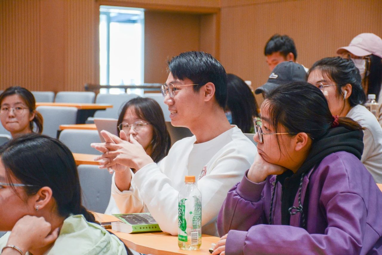 深圳大学学生蔡雨凡介绍了电影宣传物料的准备流程与情况,分享了电影周边的制作、短视频的剪辑模式以及新媒体账号运营等实践经验。提问互动环节,两院师生就电影语言表达、镜头设计和网络与新媒体视听传播方向的学生培养经验等问题进行了交流。