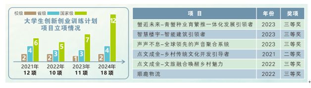 Ø 重视创新创业教育。近三年来,学院立项大学生创新创业项目共51项,累计参与学生人数达255人次。获国家级项目7项,省级项目14项,国家级和省级项目的占比较高达41%。同时,近三年学院立项大学生国际互联网+项目共30余项,累计参与人数达到160余人,其中,学生参与的2个项目获得国家级奖,4个项目获得省级奖项,获奖占比25%。近两年,新闻学院孵化在校生创业公司两家。2022年,网络与新媒体专业学子成立致意(汕头)科技有限公司;2023年,广告专业学子成立汕头市一栗科技有限公司。
