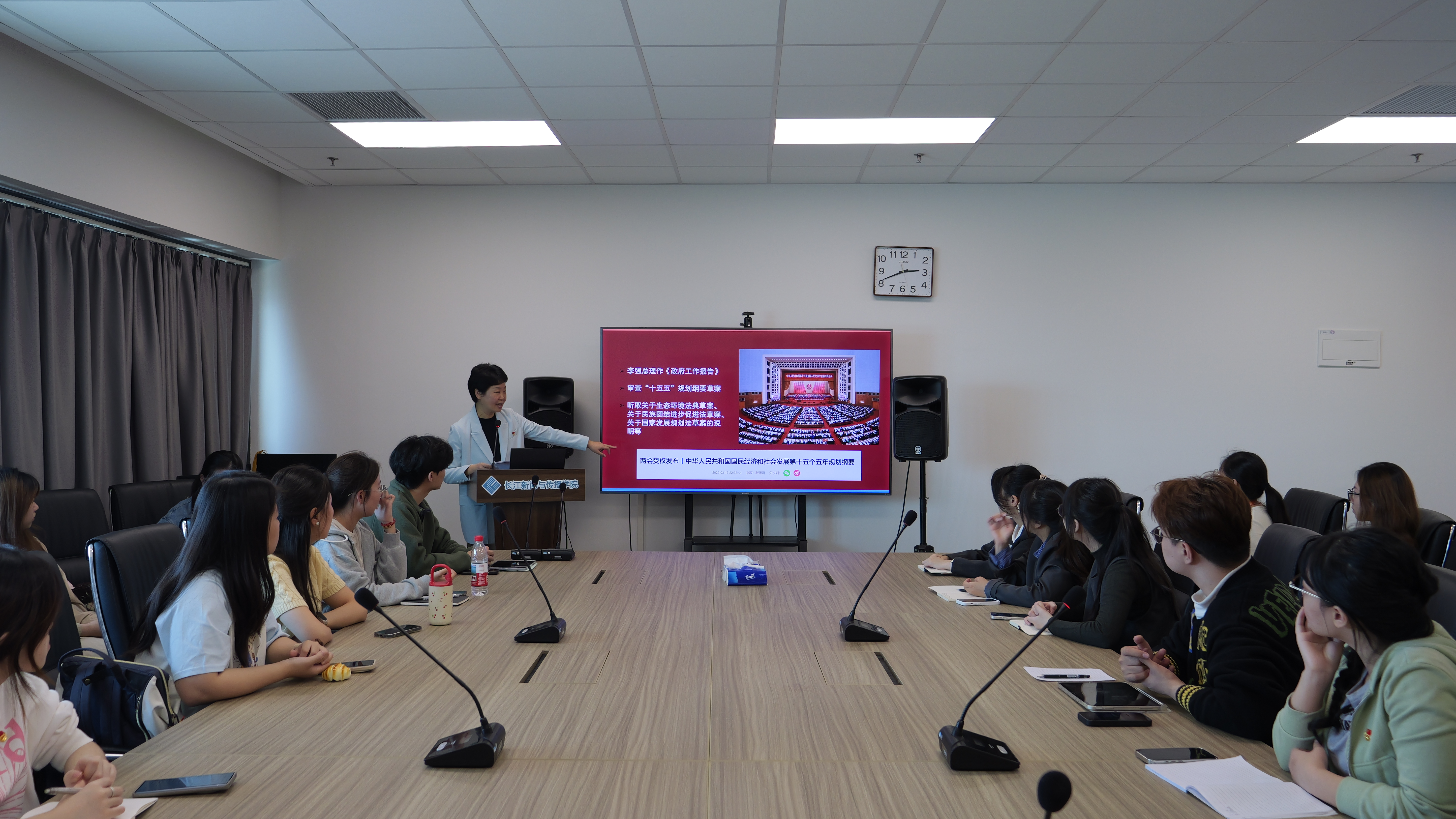 2026年全国两会是在“十四五”规划收官、“十五五”规划开局的关键节点召开的一次十分重要的会议。专题讲授环节,学院党委书记余珊燕讲述了我国过去五年取得的辉煌成就,解读2026年政治工作报告提出的一系列重要目标和任务部署。她寄语青年学子,要深入领会两会精神,明确使命担当,把个人理想融入国家发展大局,做理想信念的坚守者、专业报国的践行者、创新创造的开拓者、艰苦奋斗的传承者、服务人民的奉献者,以实干彰显担当,以青春践行初心。