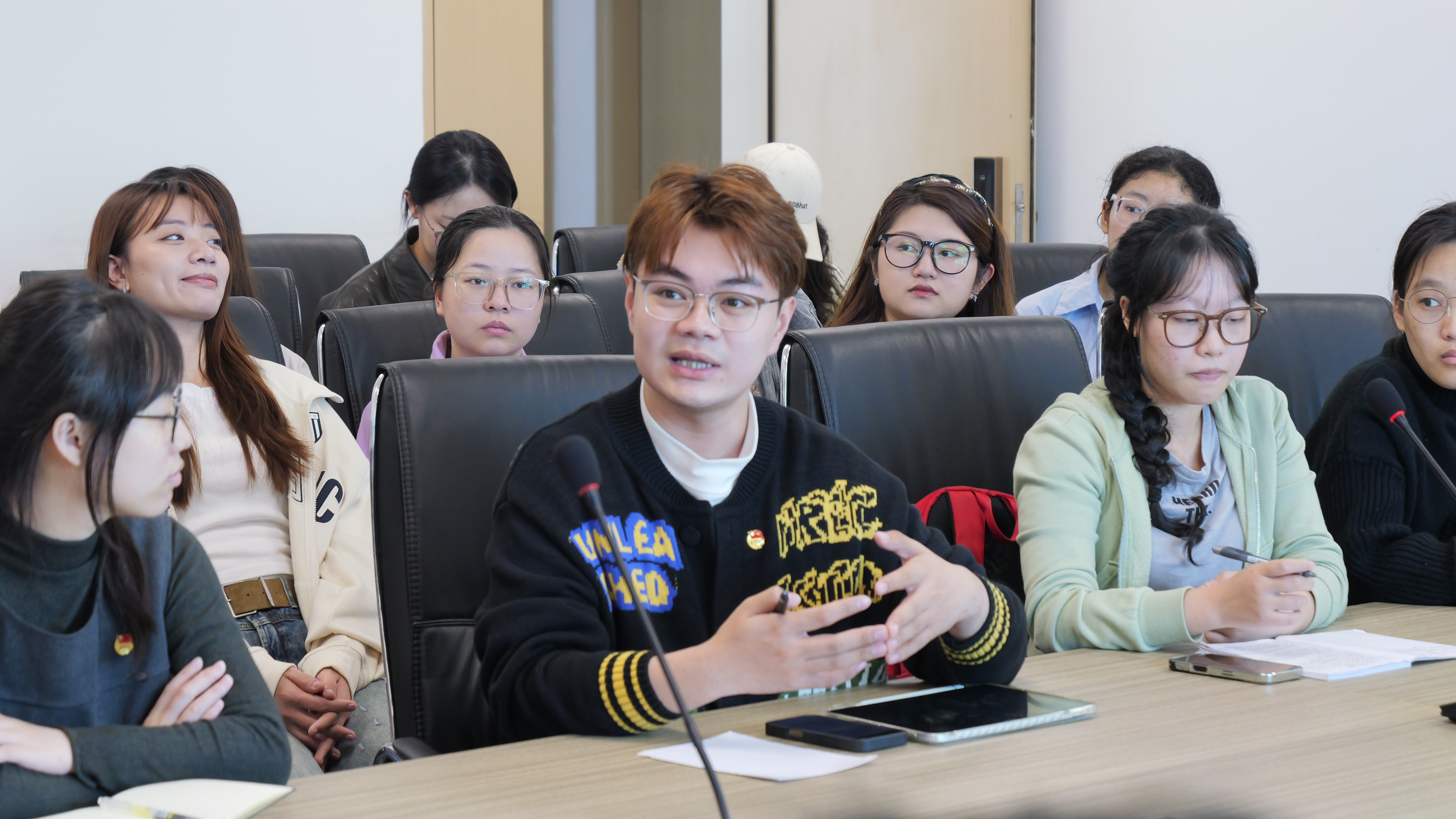 党员发展对象蔡铭誉结合自身感悟分享学习心得,聚焦两会热词畅谈学习体会。“政府工作报告提到构建就业友好型发展方式、制定高校毕业生等青年就业支持政策,这一部署对我们青年群体而言,无疑是提振信心的好消息。”他的发言贴合青年心声,引发在场同学强烈共鸣。