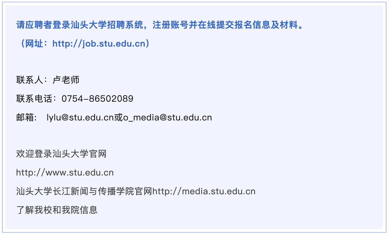 汕头大学长江新闻与传播学院诚聘英才