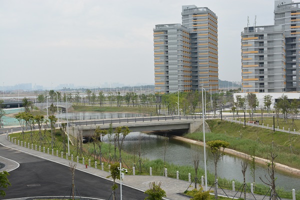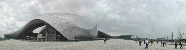 汽车穿过莱芜大桥来到了东海岸大道,“飞舞的浪花”体育馆映入眼帘,我们终于来到了期待已久的汕头大学东校区暨亚青会场馆。同学们都惊叹于这座拔地而起、凭海而立的巍巍主场馆。