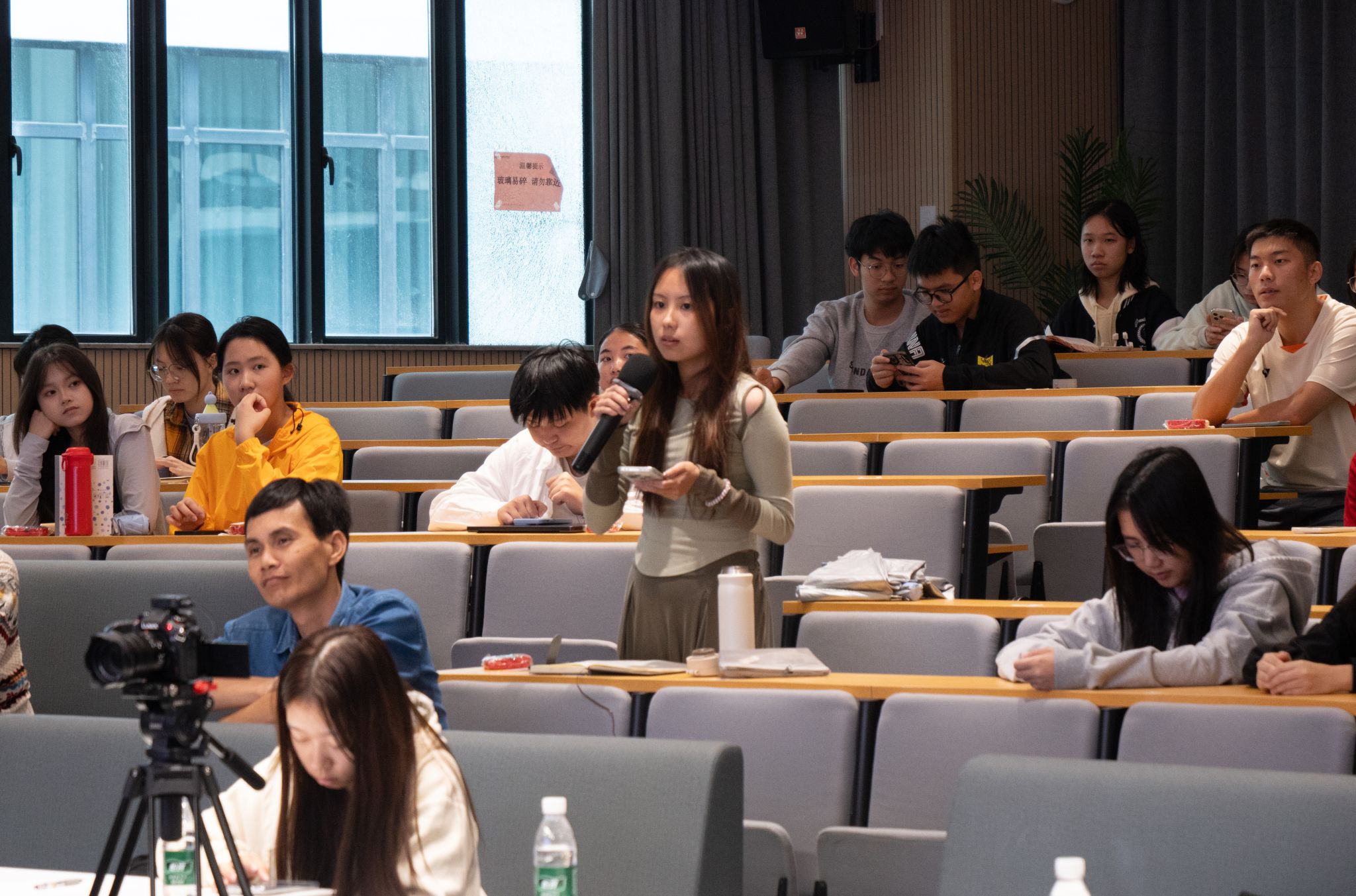 互动交流环节气氛热烈,多名学生聚焦“新传学生如何提升国际传播能力”的核心议题向嘉宾提问。陈婧回答:“建议多利用实习机会试错以找到擅长领域,没有单一能力能决定你能否进入媒体,关键是找到适合自己的平台。”韩咏梅则表示,要多了解世界对中国的不同看法,不要只看短期主流论述,拓宽视野才能建立长远工作能力。