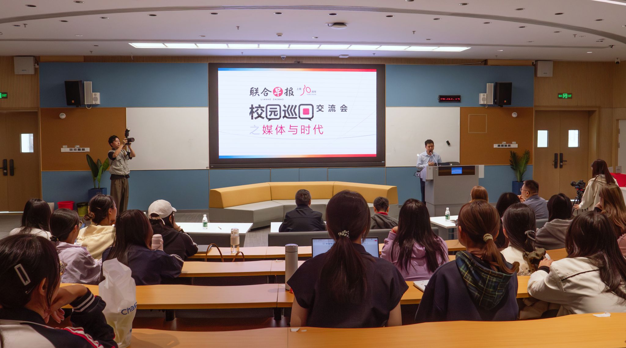 新闻学院负责人毛浩教授、副院长毛良斌教授,新加坡《联合早报》华文媒体集团区域战略与合作经理陈鸿斌、区域战略与合作执行员李慧欣及学院百余名师生参与活动。