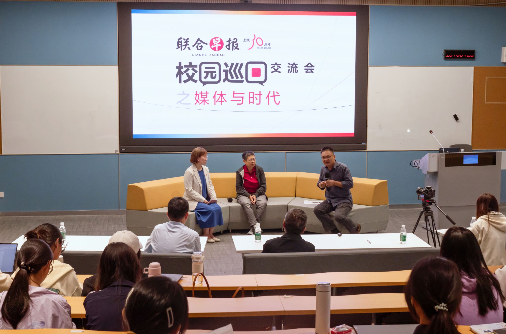 10月22日下午,“媒体与时代-新闻工作者的百年技能”交流会在汕头大学东海岸校区举办。活动特别邀请到新加坡《联合早报》执行总编辑韩咏梅、该报中国新闻副主任陈婧两位业界大咖,深度分享了他们在新闻业态深刻变革与全球化浪潮下的一线实践心得。现场,两位嘉宾还与新闻学院黎勇副教授展开精彩对谈,更聚焦全球媒体行业的现状研判与未来趋势展望,为有志于投身新闻领域的师生提供了宝贵的行业参考。