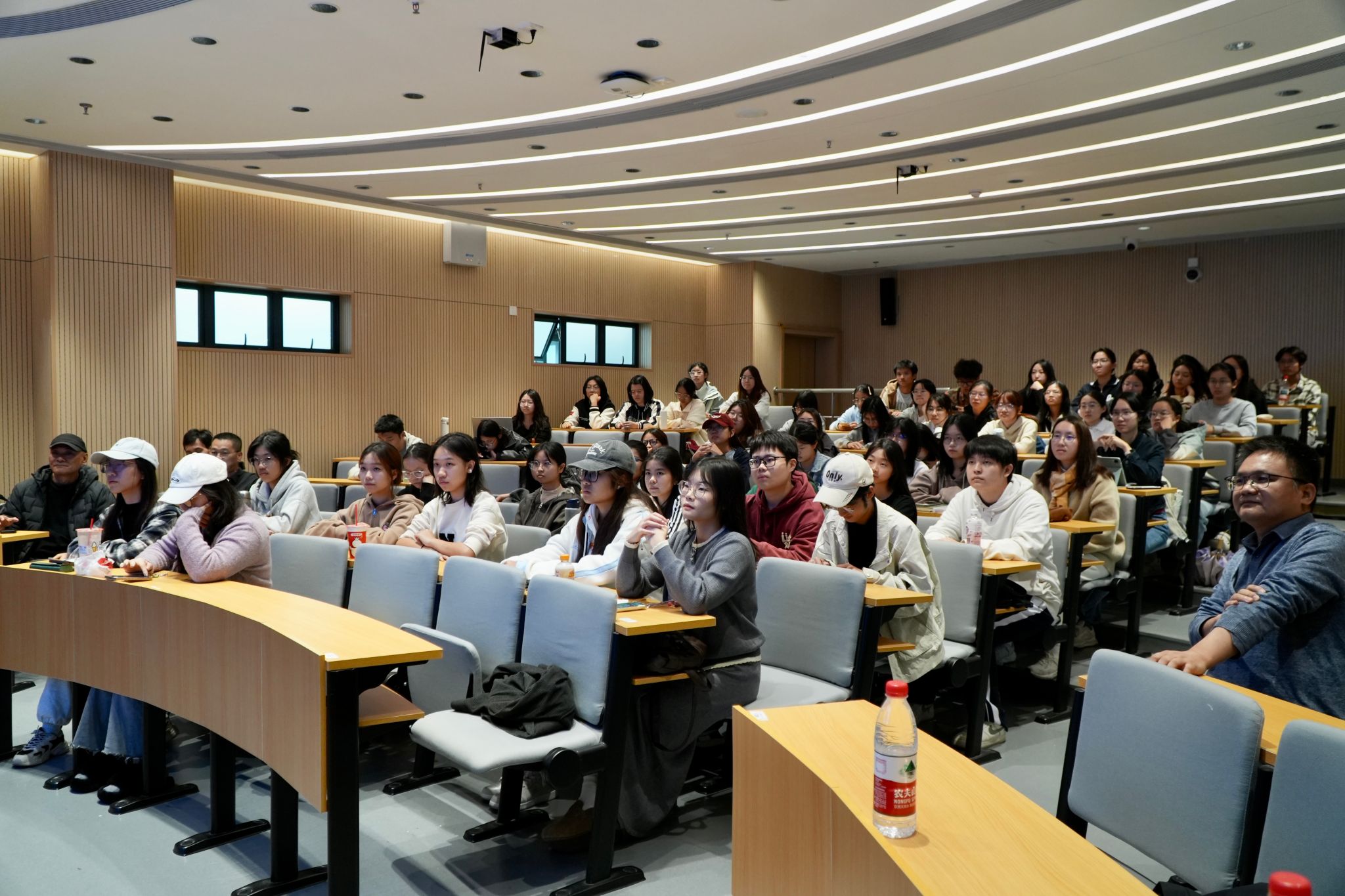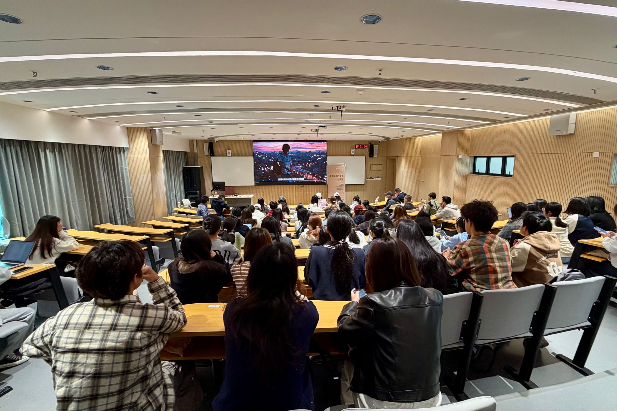 “中国新闻奖进校园”专题讲座是2025年中国记者节系列活动之一,也是学院“新闻里的大思政”品牌项目重要内容。获奖记者现场讲述创作体会,分享幕后故事,开展了一堂新闻实务的教学课程,一次生动鲜活的思政教育。